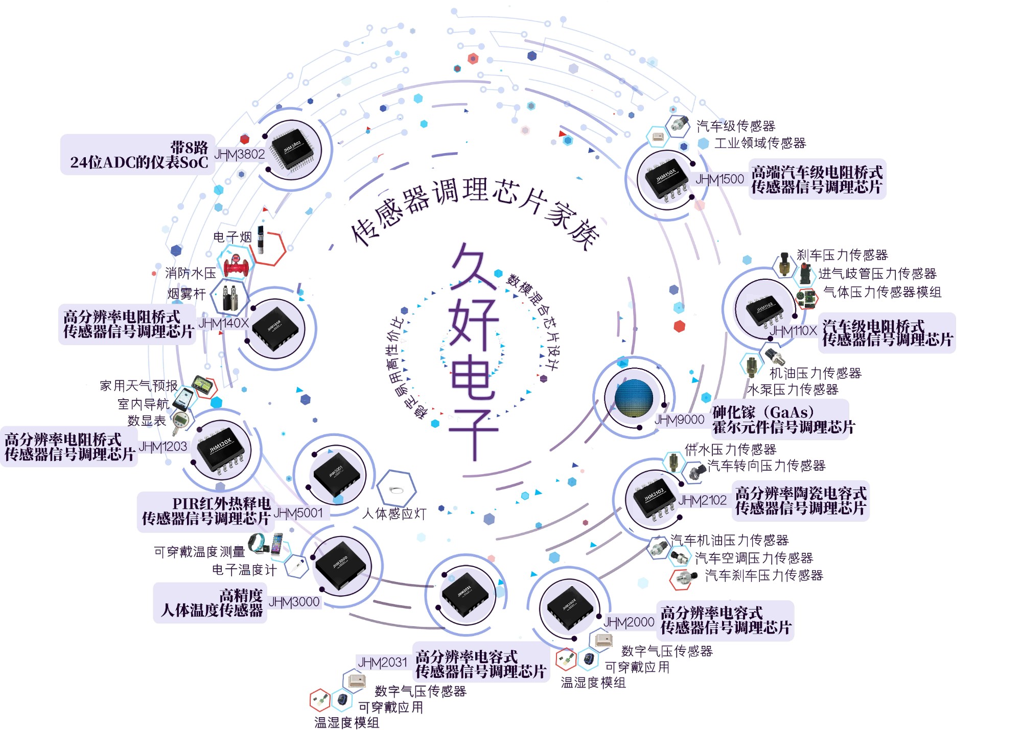北京久好電子科技有限公司創(chuàng)立于2014年,核心創(chuàng)業(yè)團隊為一批清華集成電路校友。公司專注于數模混合SoC芯片的設計開發(fā),已量產的傳感器信號調理芯片系列已經廣泛應用于壓力、溫濕度、紅外熱釋電(PIR)、溫度和電流等傳感器領域,尤其是在車用壓力傳感器領域取得卓越成果。公司在超低功耗數模混合集成電路設計、低功耗SoC系統(tǒng)設計、大批量量產系統(tǒng)與信號調理芯片的應用軟件開發(fā)等領域積累了豐富的經驗,能快速地為合作伙伴提供具有世界競爭力的芯片技術及完整解決方案。